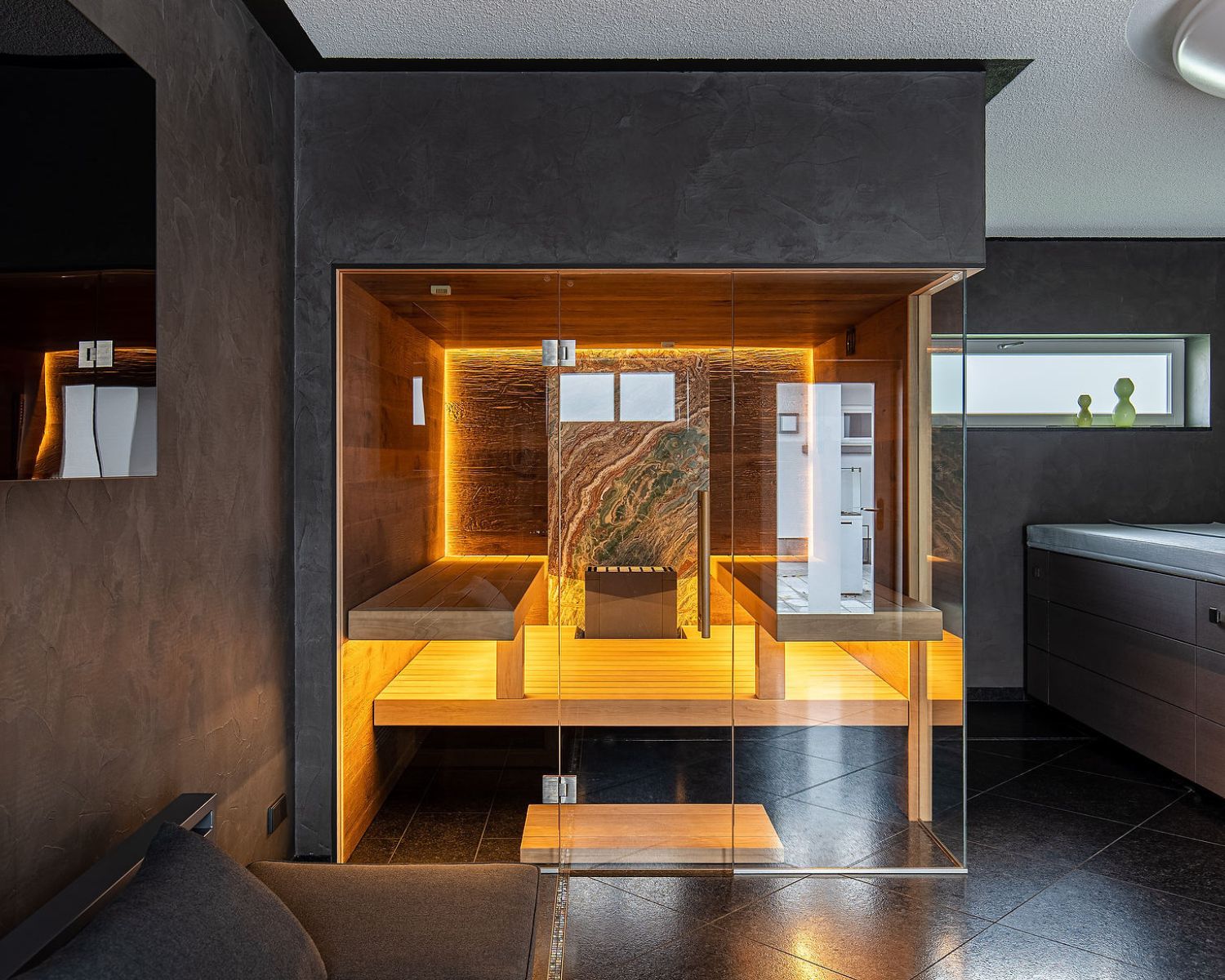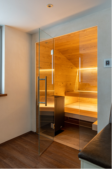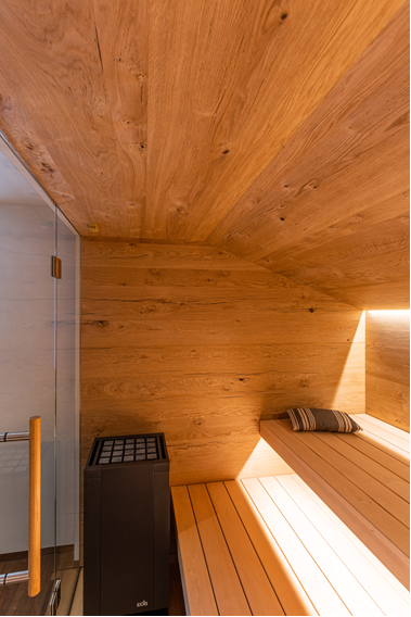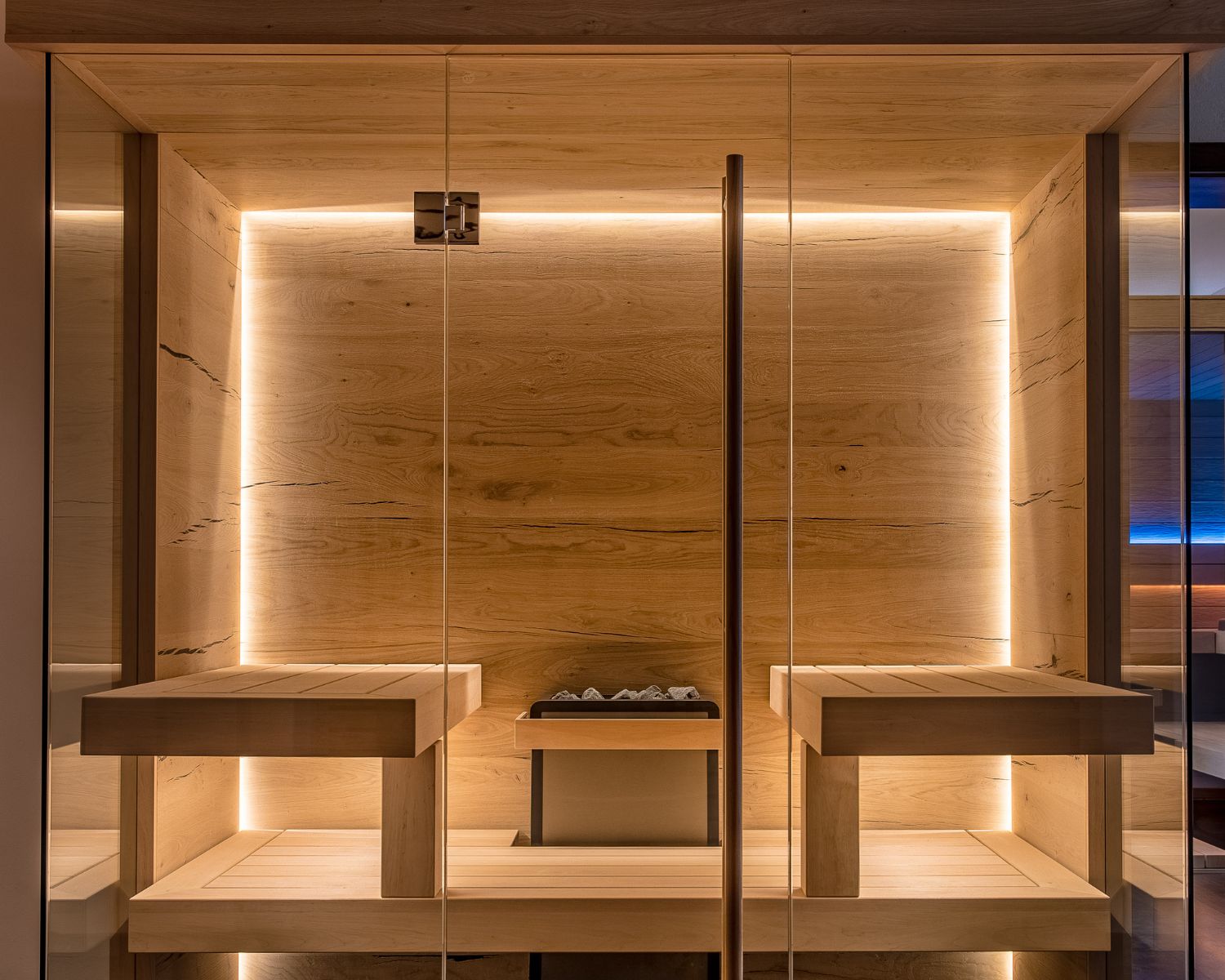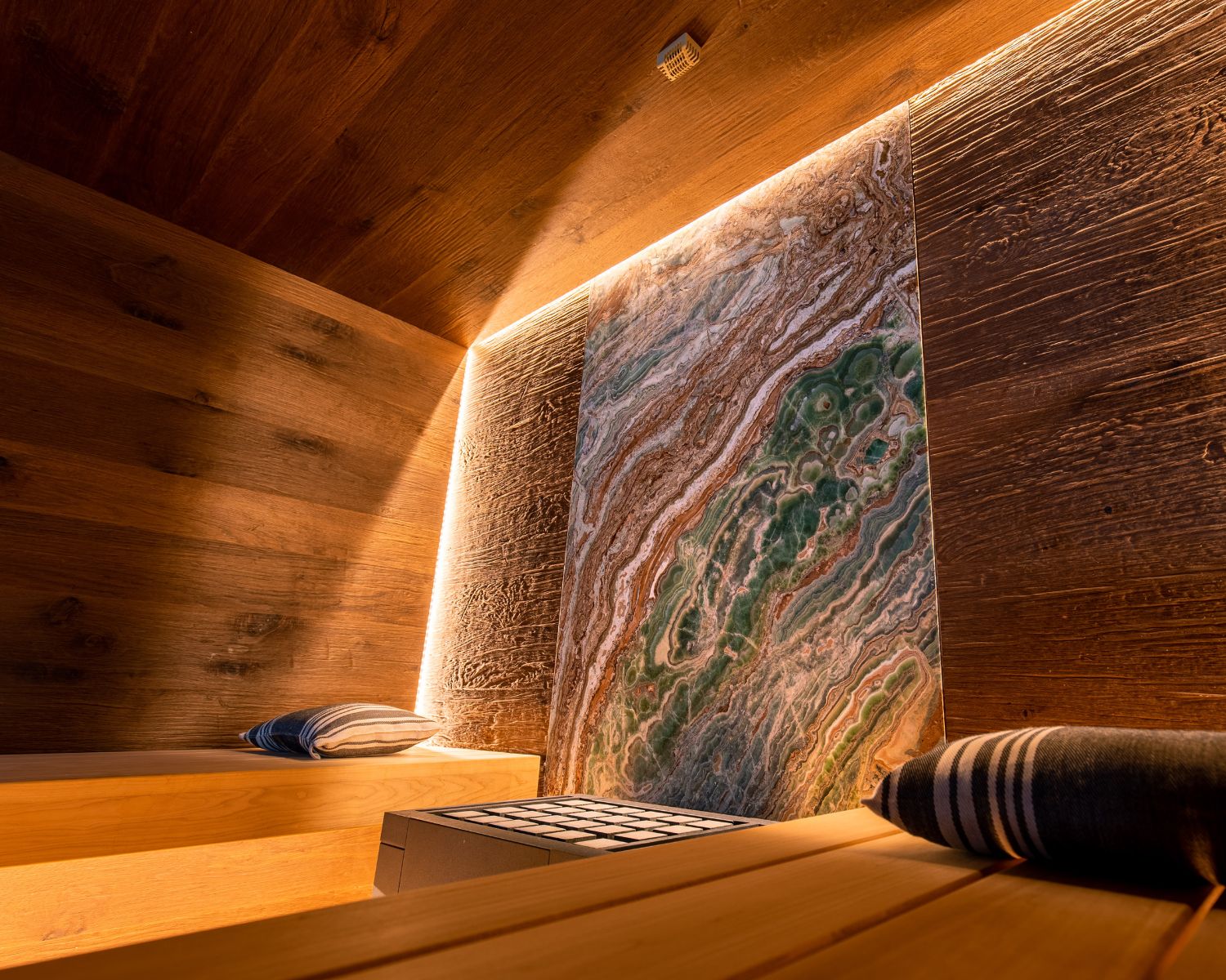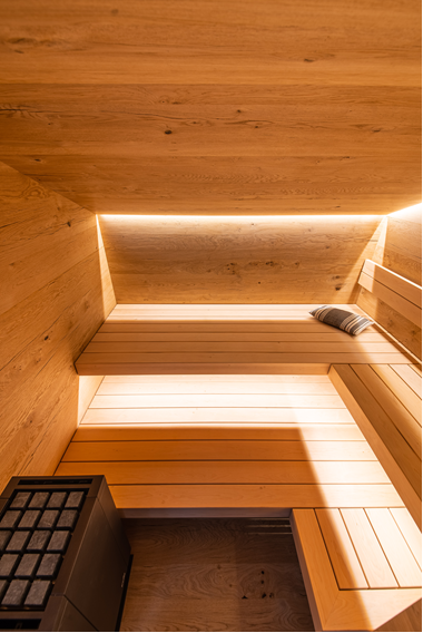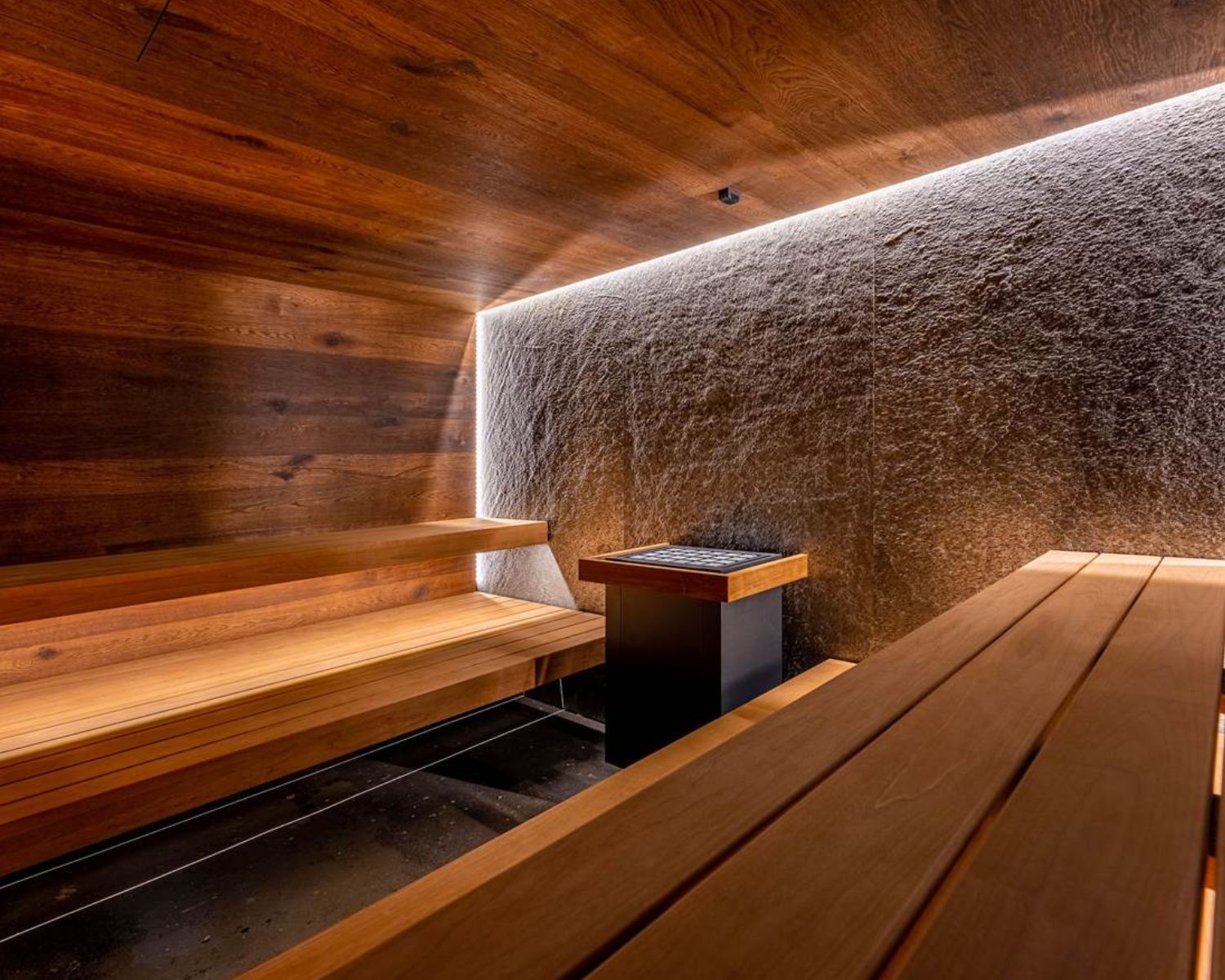 The interior, adorned with carefully selected wood or stone panels, showcases a sophisticated aesthetic and exceptional craftsmanship. Designed with healthy and durable materials, these saunas guarantee perfect stability even in hot and humid environments.